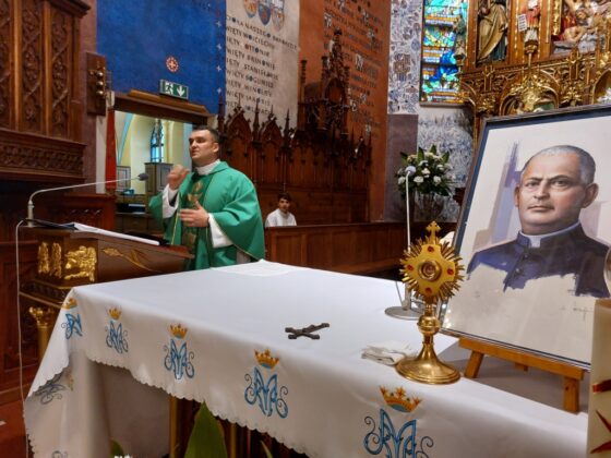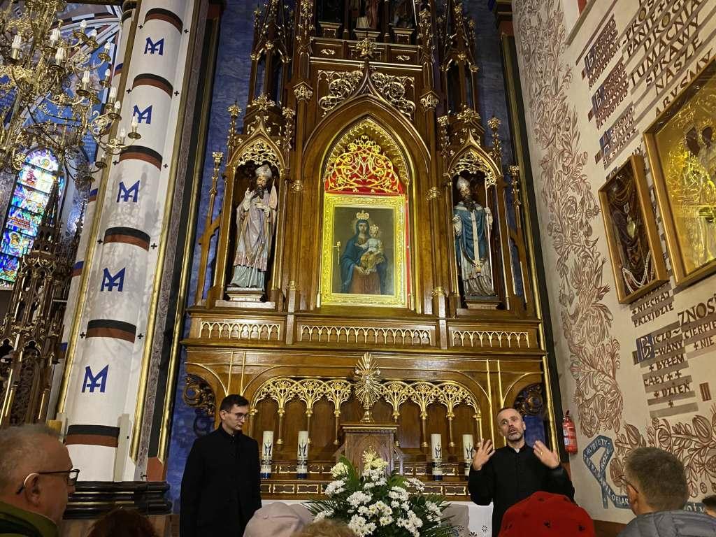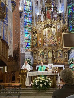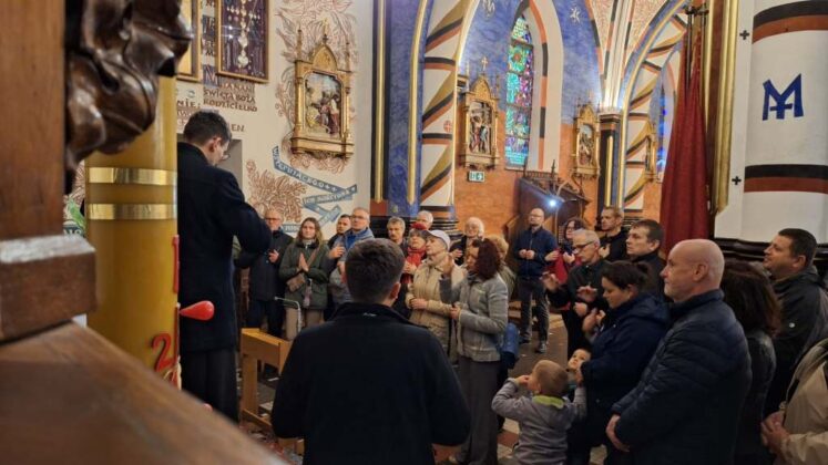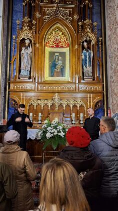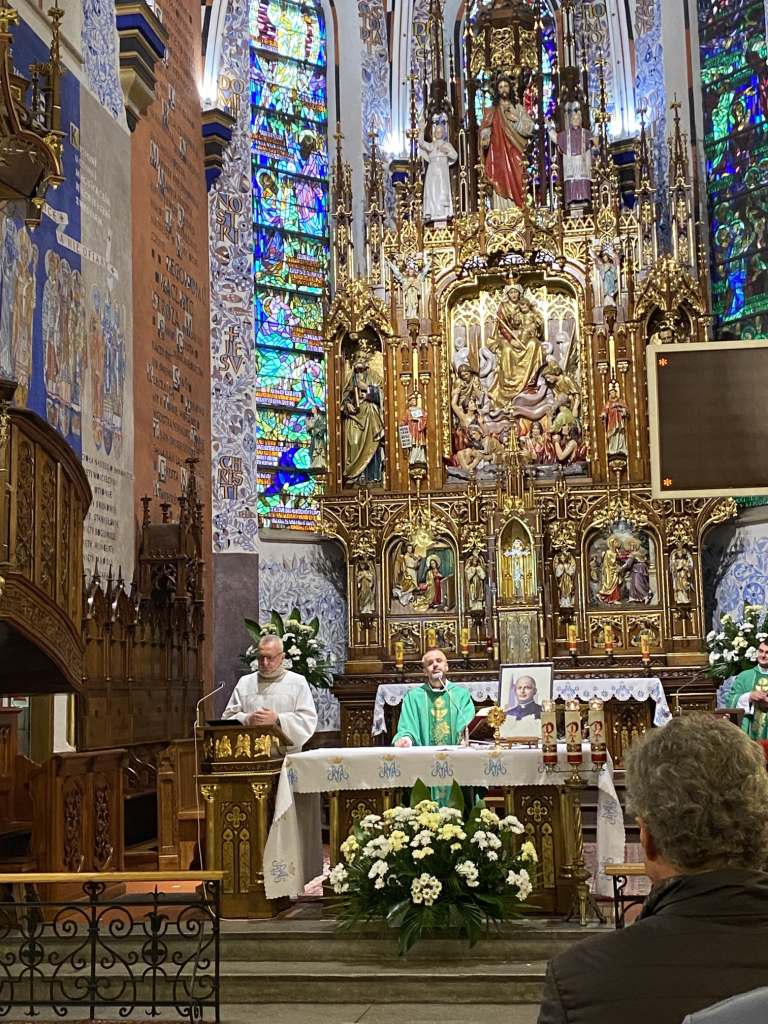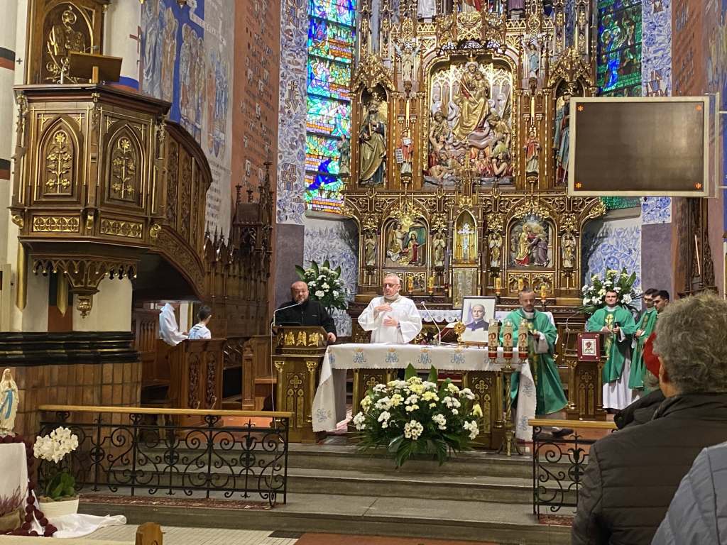 Punktem centralnym była Msza Święta sprawowana w języku migowym, której przewodniczył ks. Stanisław Gurba, diecezjalny duszpasterz niesłyszących. We wstępie wyraził wdzięczność duszpasterzom za obecność na pielgrzymce i pracę na rzecz niepełnosprawnych, głuchym za podjęty trud i przybycie do Matki Bożej Szkaplerznej, a przede wszystkim gospodarzom miejsca za otwarte serce i przyjęcie pielgrzymów. „To już drugi raz, gdy przybywamy do rozwadowskiego sanktuarium na bardzo życzliwe zaproszenie Księdza Proboszcza. Zgodnie z jego wolą i pragnieniem to miejsce jest dla nas stałym punktem corocznych diecezjalnych pielgrzymek w październiku, miesiącu poświęconym Matce Bożej” – mówił ks. Stanisław. Okolicznościową homilię wygłosił ks. Aleksander Zdun, duszpasterz niesłyszących w Ostrowcu Świętokrzyskim. „Musimy umieć dziękować Bogu, za okazane dobro i być jak ten jeden z dziesięciu uzdrowionych z choroby trądu, który wrócił podziękować Jezusowi” – mówił kaznodzieja w nawiązaniu do niedzielnej Ewangelii. „Maryja również wyprasza dla nas wiele łask, dlatego musimy jak najczęściej modlić się na różańcu i oddać się Jej całkowicie. Dzisiaj w tym sanktuarium mamy okazję to uczynić” – dodał ks. Aleksander. Pielgrzymom w znaku relikwii towarzyszył św. Filip Smaldone, patron niesłyszących. Po Mszy św. ks. Damian Surowiec poprowadził modlitwę przed obrazem Matki Bożej Szkaplerznej, zawierzając pątników opiece Maryi.