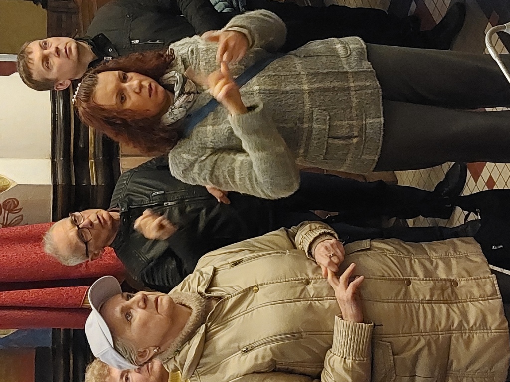 Druga część spotkania odbyła się na placu przy plebanii. Stowarzyszenie Przyjazna Dłoń przygotowało dla niesłyszących gorącą herbatę i poczęstunek. Spotkanie przy stole było okazją do rozmów, wymiany doświadczeń duszpasterskich.