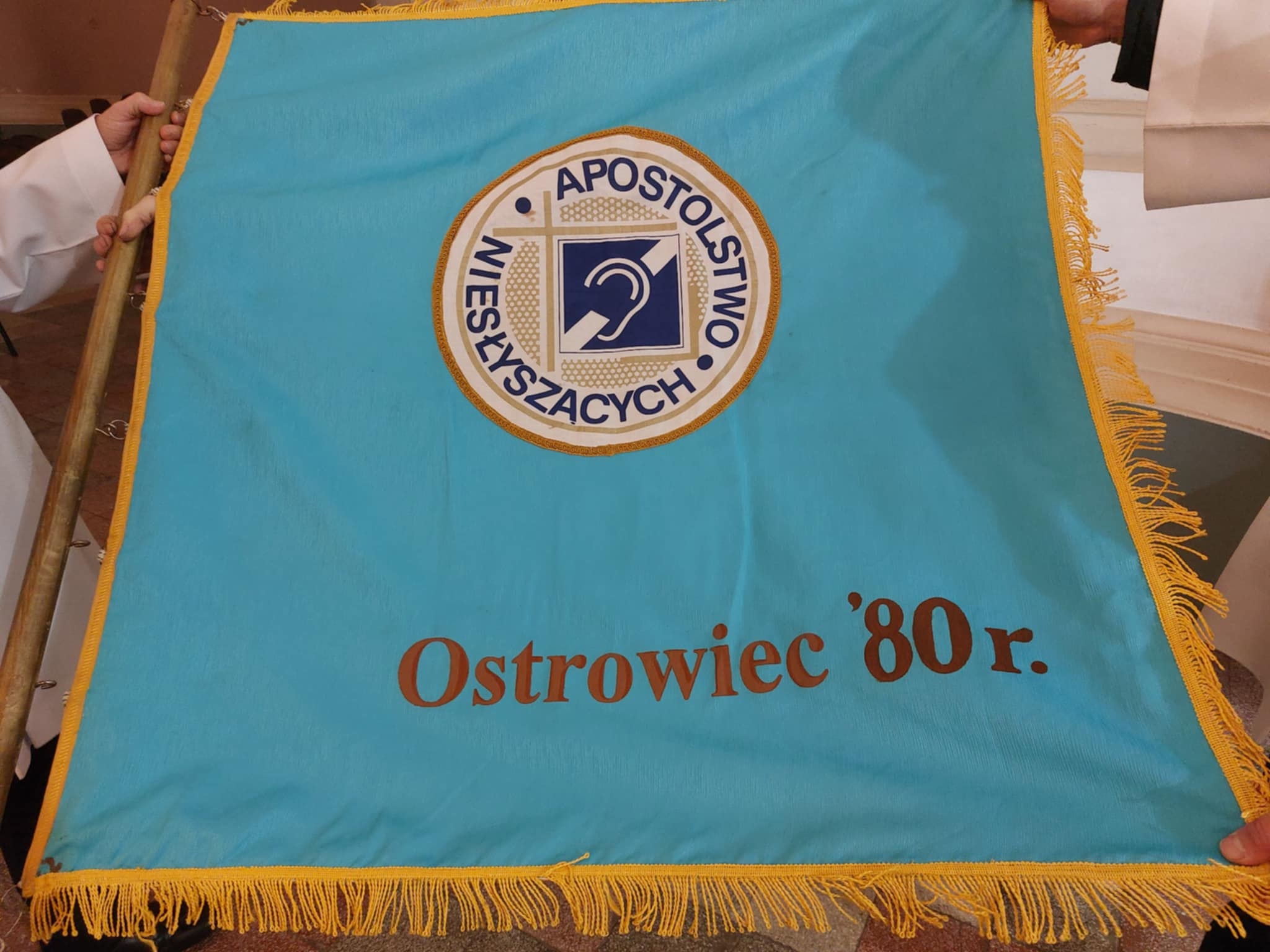 Na sztandarze Duszpasterstwa Niesłyszących w Ostrowcu Świętokrzyskim wyhaftowana jest 1980 rok. To przypomina, że już ponad 45 lat działa duszpasterstwo niesłyszących w Ostrowcu Świętokrzyskim.